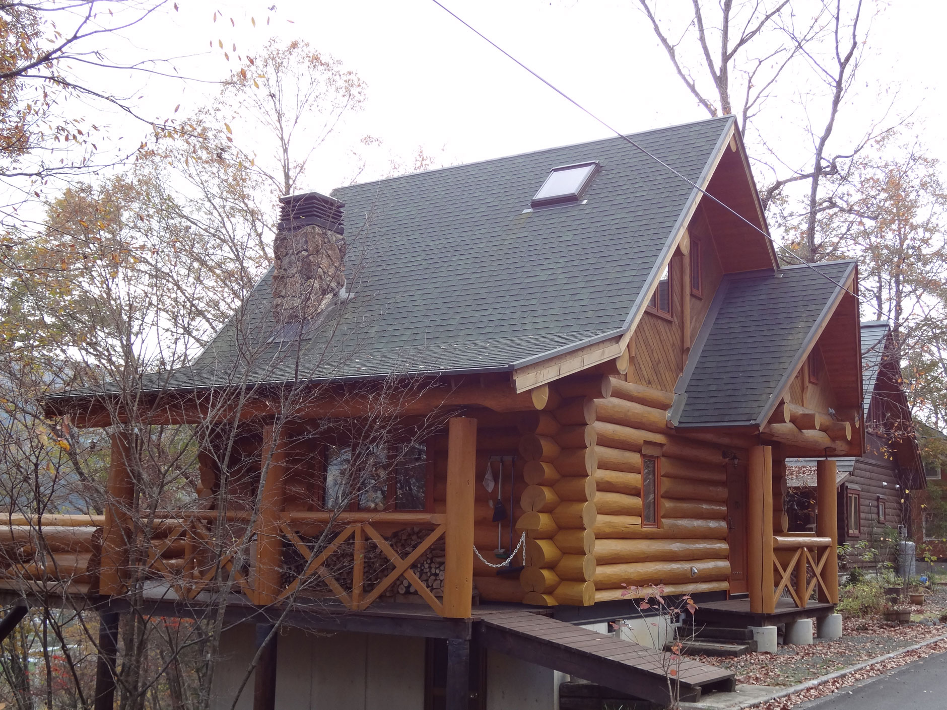 良く手入れされた、ログウォールの感じが15年の歳月とともに円熟味を増しています。